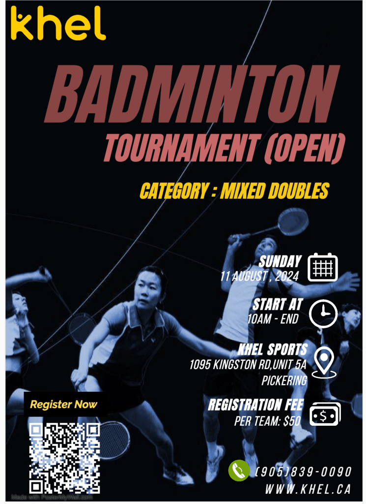 Get ready to smash and serve at the Mixed Doubles Badminton Tournament at Khel on